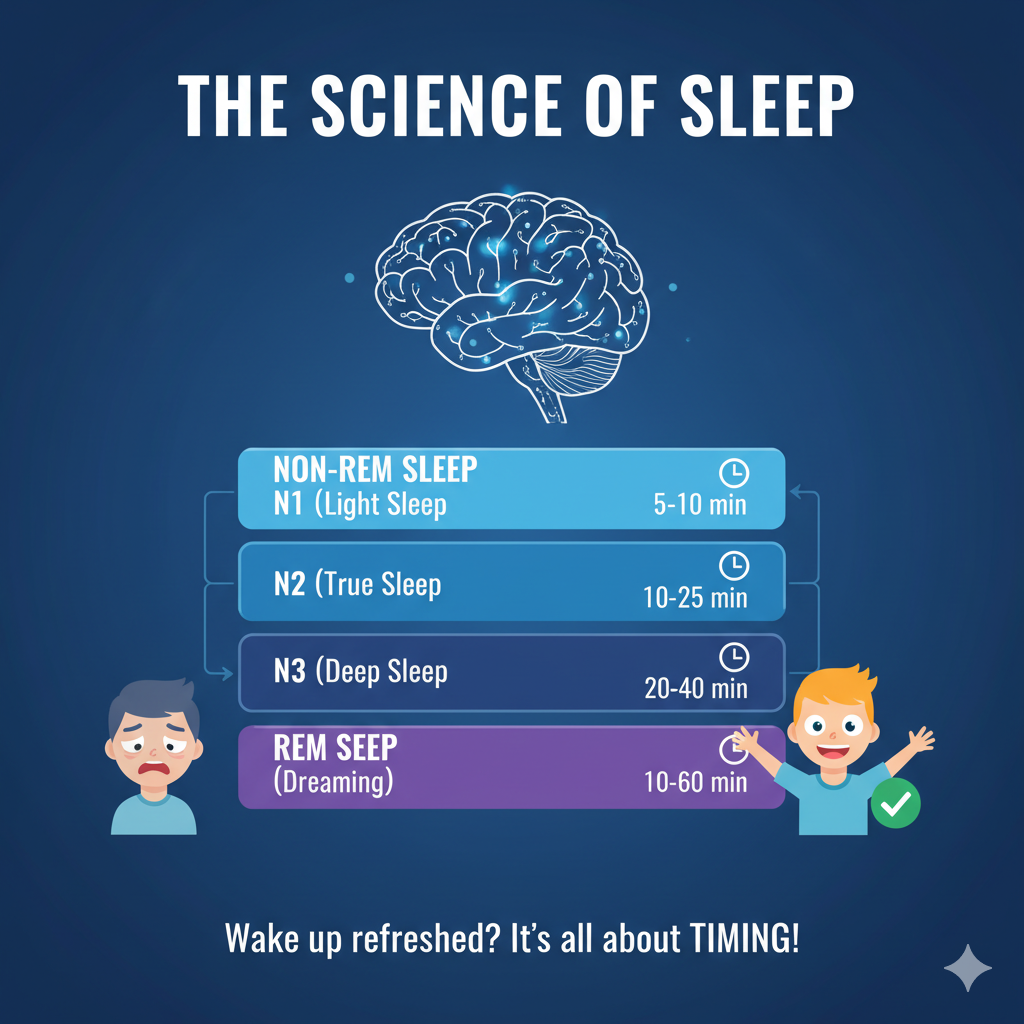 Sleep is an important biological process in humans. It is such an essential process that without it we cannot function properly. Biologists, doctors, psychologists, physicians, chemists, and even gym trainers recommend seven to nine hours of sleep, from which we can all assess the importance of sleep. But if sleep is good, a person feels fresh all day long, and if sleep is not good, a person feels sleepy all day long and feels strangely tired. In today's post, we will see how many stages of sleep there are in total, how long each stage lasts, and which stage is the one in which we feel very fresh when we wake up, and in which stage do we feel sleepy when we wake up. Basically, sleep is divided into two types, and they are called non-rapid eye movement and rapid eye movement. Non-rapid eye movement is a stage that consists of three more stages, which are called one, two, and three respectively. This is the stage in which our eyes do not move rapidly while sleeping and is also called a stage of sleep in which we keep crossing the moment from sleep to deep sleep. The second stage of sleep is called rapid eye movement. This is a very stage of sleep, which is called deep sleep, and at the end of it, if we wake up, we feel very refreshed. The stage of non-rapid eye movement is further divided into three stages. The first of these are called E1, E2 and E3. The lightest of them is E1 and according to some data, its duration is up to 10 minutes and according to some data, its duration is up to 20 minutes and 30 minutes. This depends on the mental health, physical health, psychology and fatigue of the person. By the way, to know the duration of time with more accuracy, you can do a simple Google search. Now let's talk about N2, its duration can be up to about 40 minutes, while N3 lasts for one to one and a half hours. Now, if a person wakes up in N1 stage, that is, in the initial state of sleep, he feels a little sleepy and if that person wakes up in N2 stage, he will feel a little more sleepy. But N3 stage is a stage that is called deep sleep. In this, if a person is woken up, for a few moments he sees his surroundings blinking repeatedly and is not even able to walk properly. While if we talk about the rapid eye movement stage, it is a deeper than deep sleep in which our sleep starts to break, that is, it is a transitional stage in which we start to wake up from sleep slowly and at the same time we start to leave deep sleep, that is, it is a transitional stage and if at the end of it a person is woken up or he wakes up himself, he feels very fresh.
