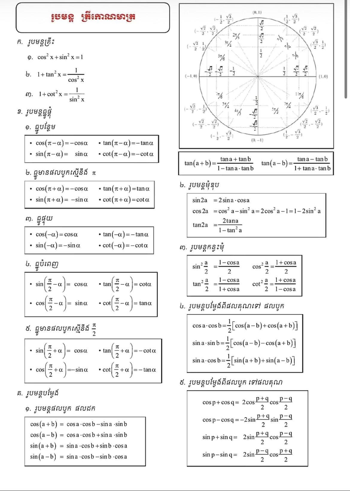 រូបមន្តត្រីកោណមាត្រ