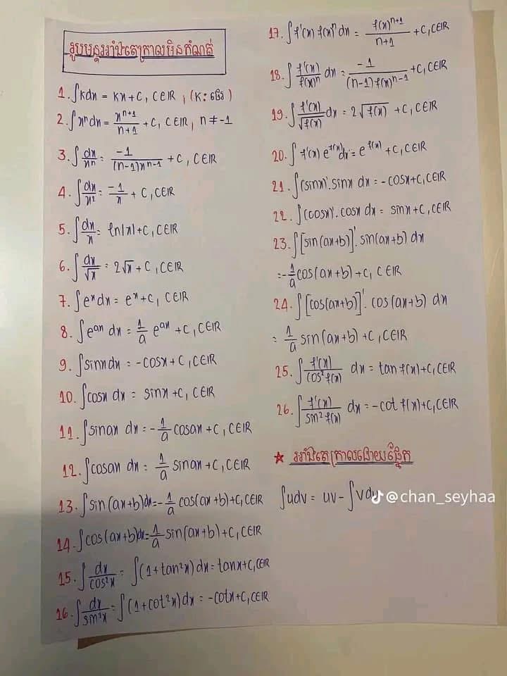 រូបមន្តអាំងតេក្រាលមិនកំណត់
