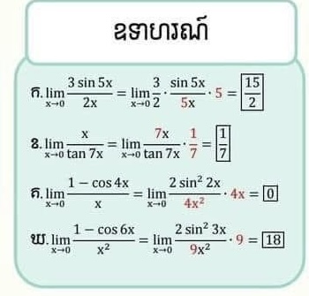 • លីមីតត្រីកោណមាត្រនេះនៅកម្រិតដំបូងគឺមិនសូវពិបាកយល់ប៉ុន្មានទេឲតែយើងចាំរូបមន្តគ្រឹៈមួយចំនួនដូចជា: