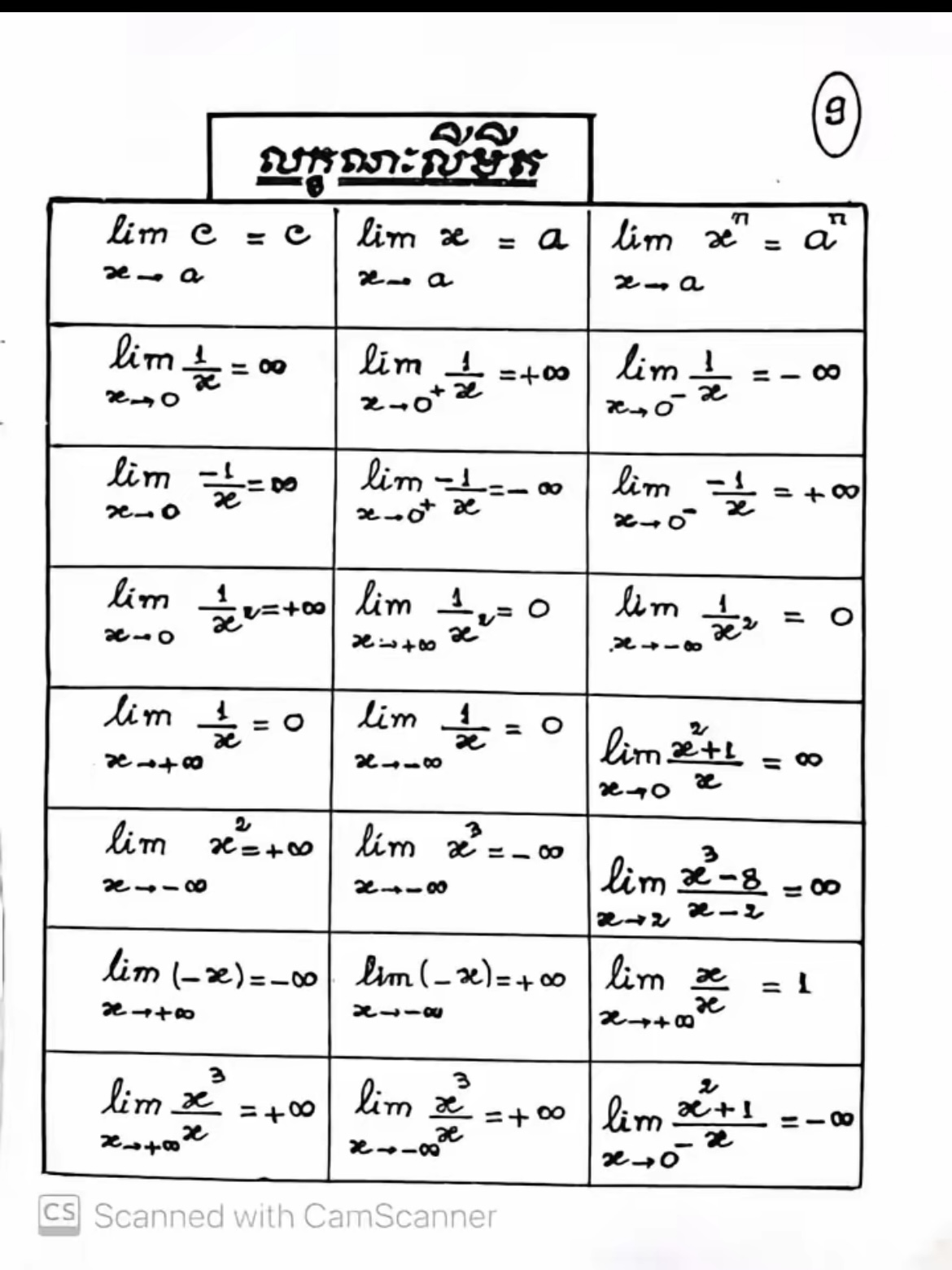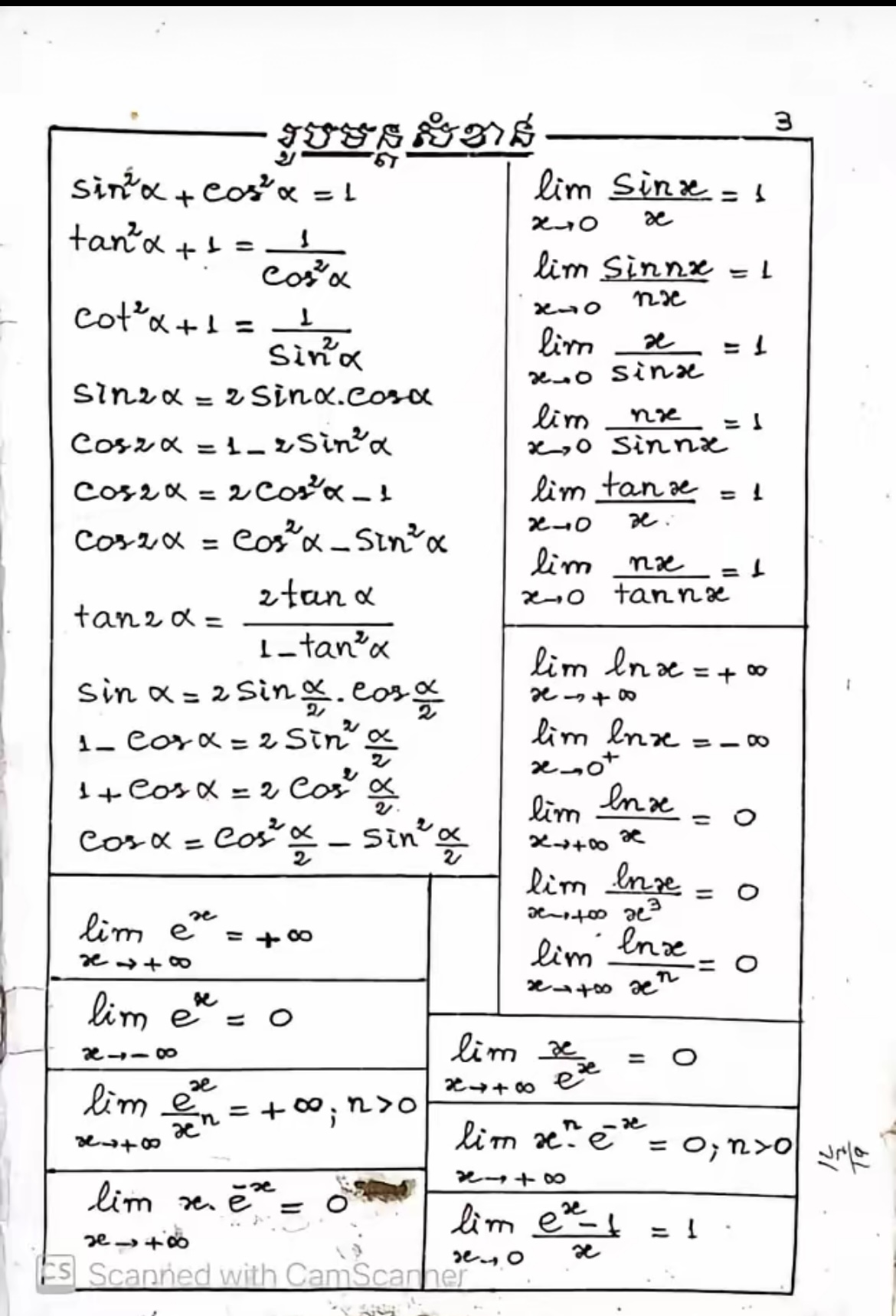 រូបមន្តសម្រាប់គណនាលីមីតទាំងថ្នាក់ទី១១ និង១២