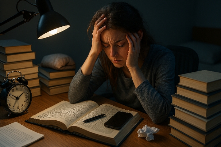 - Sleep problems: Studying late at night disrupts the biological clock, causing daytime sleepiness and loss of concentration.