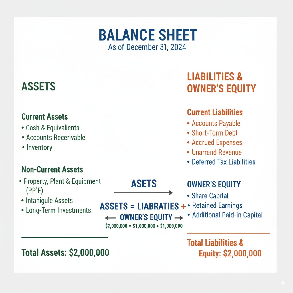 តារាងតុល្យការរបស់ក្រុមហ៊ុន(Balance Sheet) ត្រូវបានគេស្គាល់ផងដែរថាជា "របាយការណ៍ស្ថានភាពហិរញ្ញវត្ថុ" បង្ហាញពីទ្រព្យសកម្ម បំណុល និងភាគហ៊ុនរបស់ម្ចាស់ (ទ្រព្យសម្បត្តិសុទ្ធ) របស់ក្រុមហ៊ុននៅចំណុចជាក់លាក់ណាមួយ។ តារាងតុល្យការ រួមជាមួយនឹងរបាយការណ៍ចំណូល និងរបាយការណ៍លំហូរសាច់ប្រាក់ បង្កើតបានជាមូលដ្ឋានគ្រឹះនៃរបាយការណ៍ហិរញ្ញវត្ថុរបស់ក្រុមហ៊ុនណាមួយ។