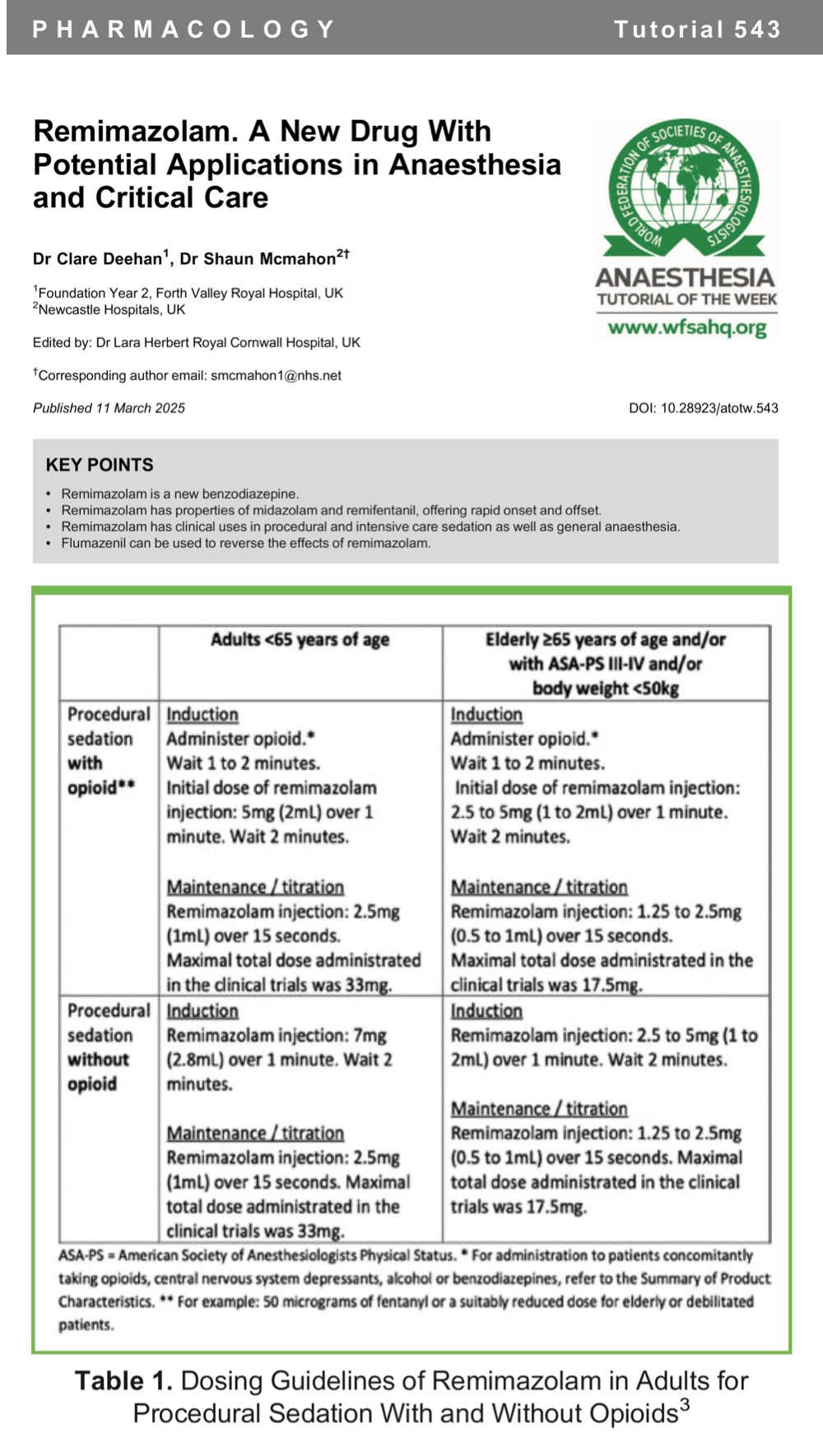 Remimazolam 2025, Reference: Anaesthesia Tutorial of The Week, Posted by Dr Sao S. Vatana, ANE-ER-ICUsereyvatanasao Follow10mo