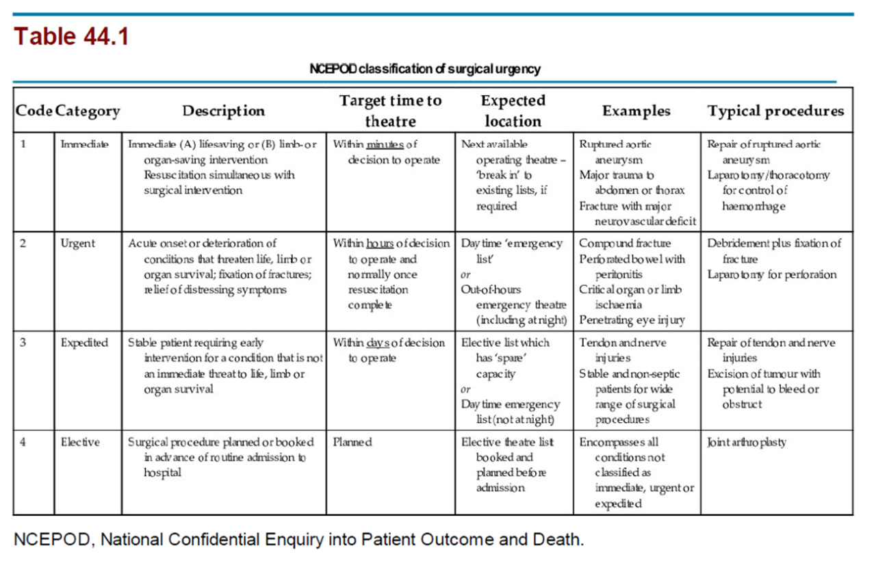 NCEPOD classification of surgical urgency Dr Sao S. Vatana, ANE-ER-ICU Reference: Smith and Aitkenhead's Textbook of Anaesthesia, Page 1880sereyvatanasao Follow9mo